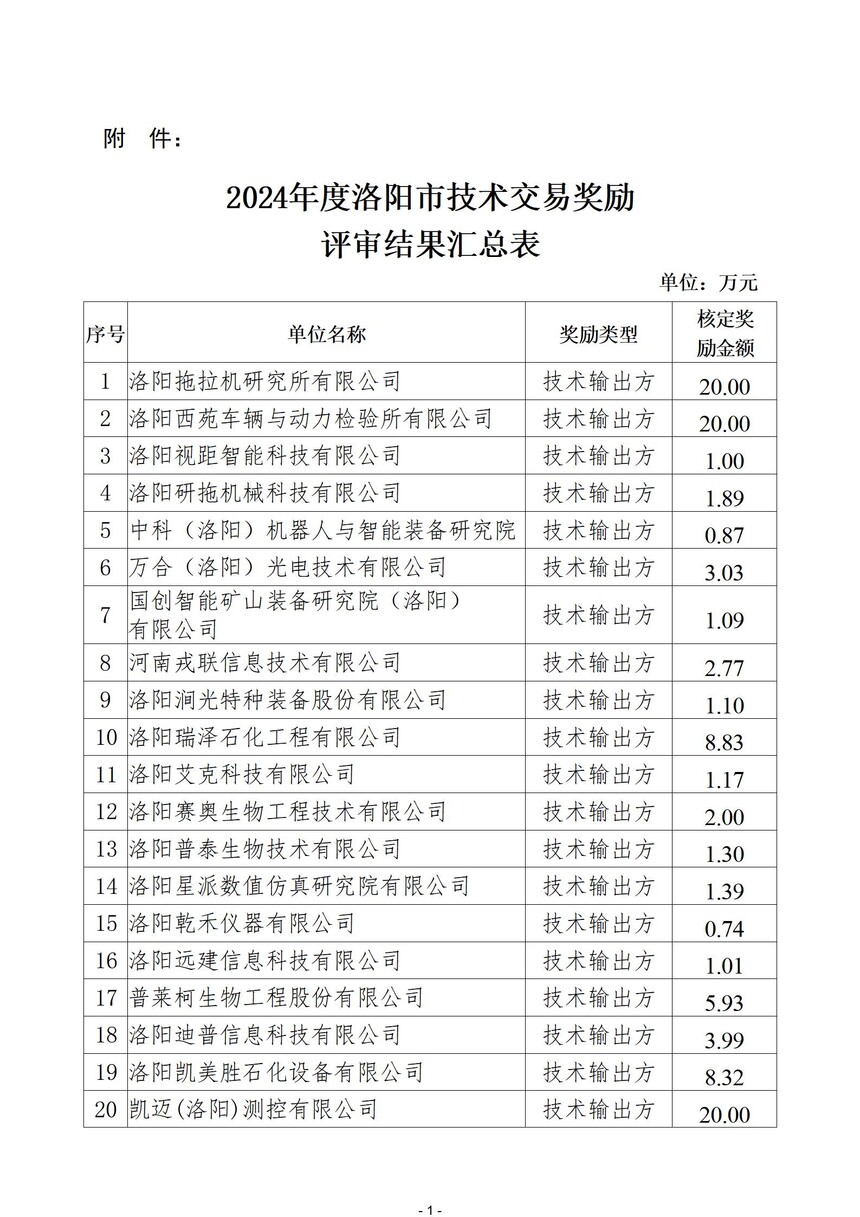 附件:2024年度洛陽(yáng)市技術(shù)交易獎(jiǎng)勵(lì)評(píng)審結(jié)果匯總表