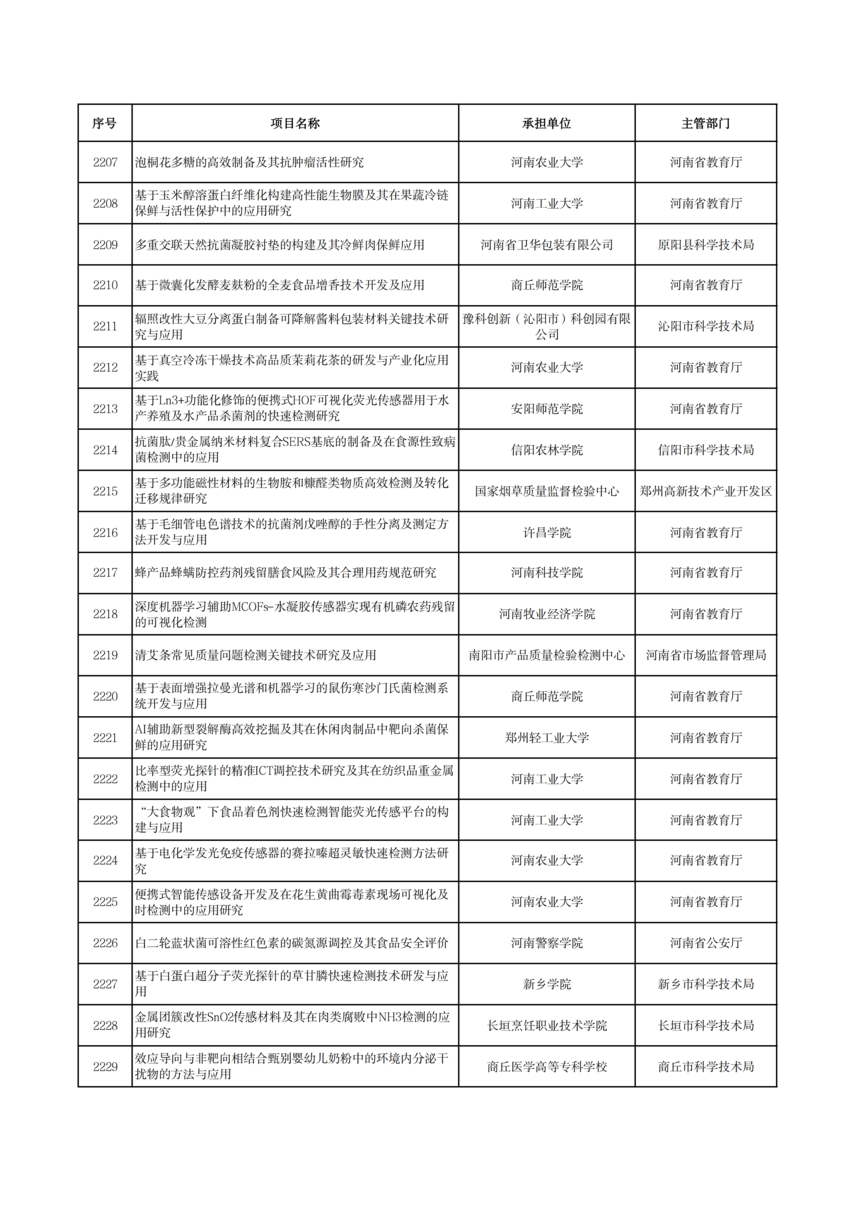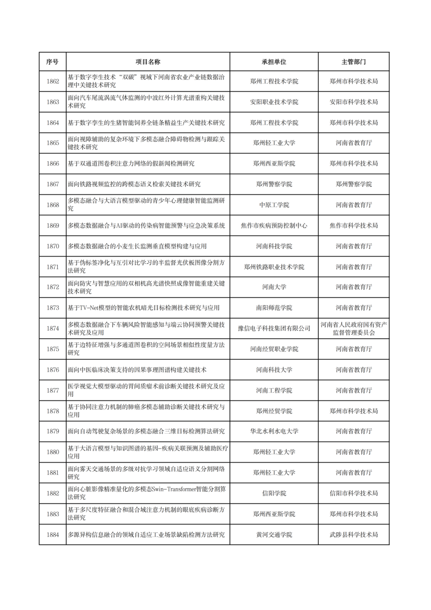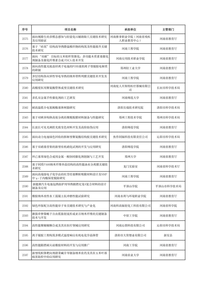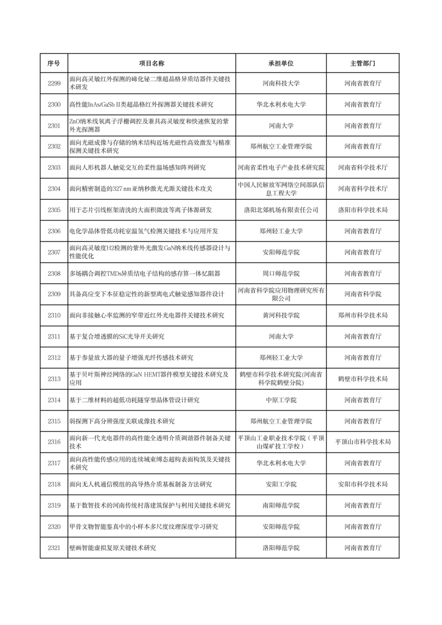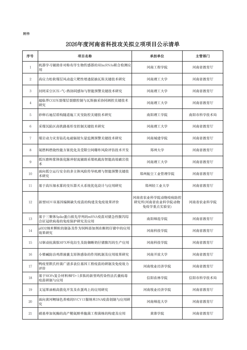 2026年度河南省科技攻關項目擬立項公示2026年度河南省科技攻關項目擬立項公示 根據(jù)《河南省科技計劃項目管理辦法(試行)》和《河南省科技計劃項目信息公開管理辦法》要求,現(xiàn)將2026年度河南省科技攻關擬立項項目予以公示,公示期5個工作日(2026年1月19日—23日)。 公示期間,任何單位或者個人對公示項目有異議的,應當以書面方式向我廳提出。為便于核實查證、客觀公正處理異議,提出異議的單位或者個人應當表明真實身份,并提供有效聯(lián)系電話和必要的佐證材料。個人提出異議的,須在書面異議材料上簽署真實姓名和身份證號碼;以單位名義提出異議的,須提供聯(lián)系人并加蓋本單位公章。匿名異議和超出期限的異議不予受理。 科技項目統(tǒng)籌推進處: 0371—86561692 廳機關紀委: 0371—86561631 附件: 2026年1月19日