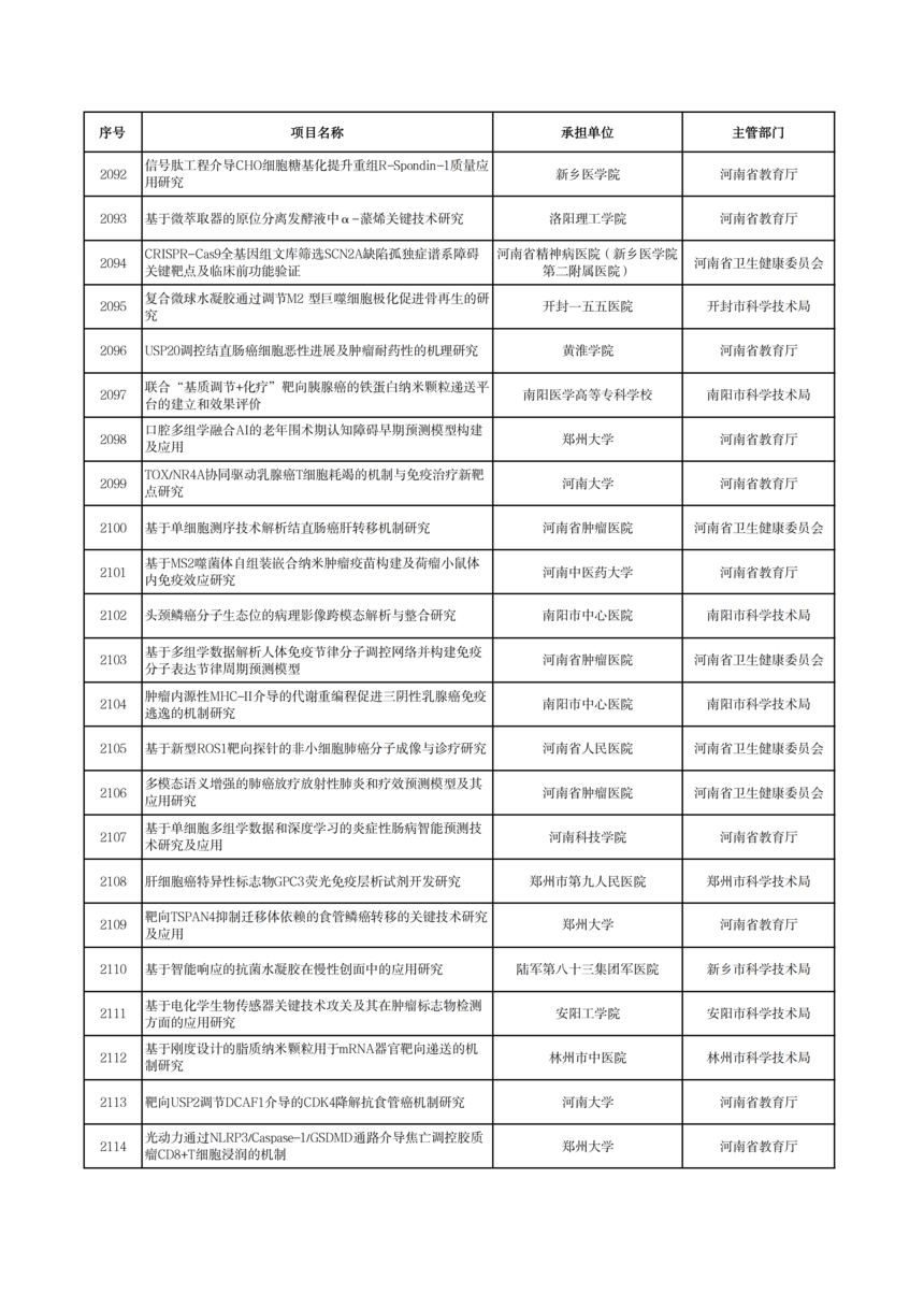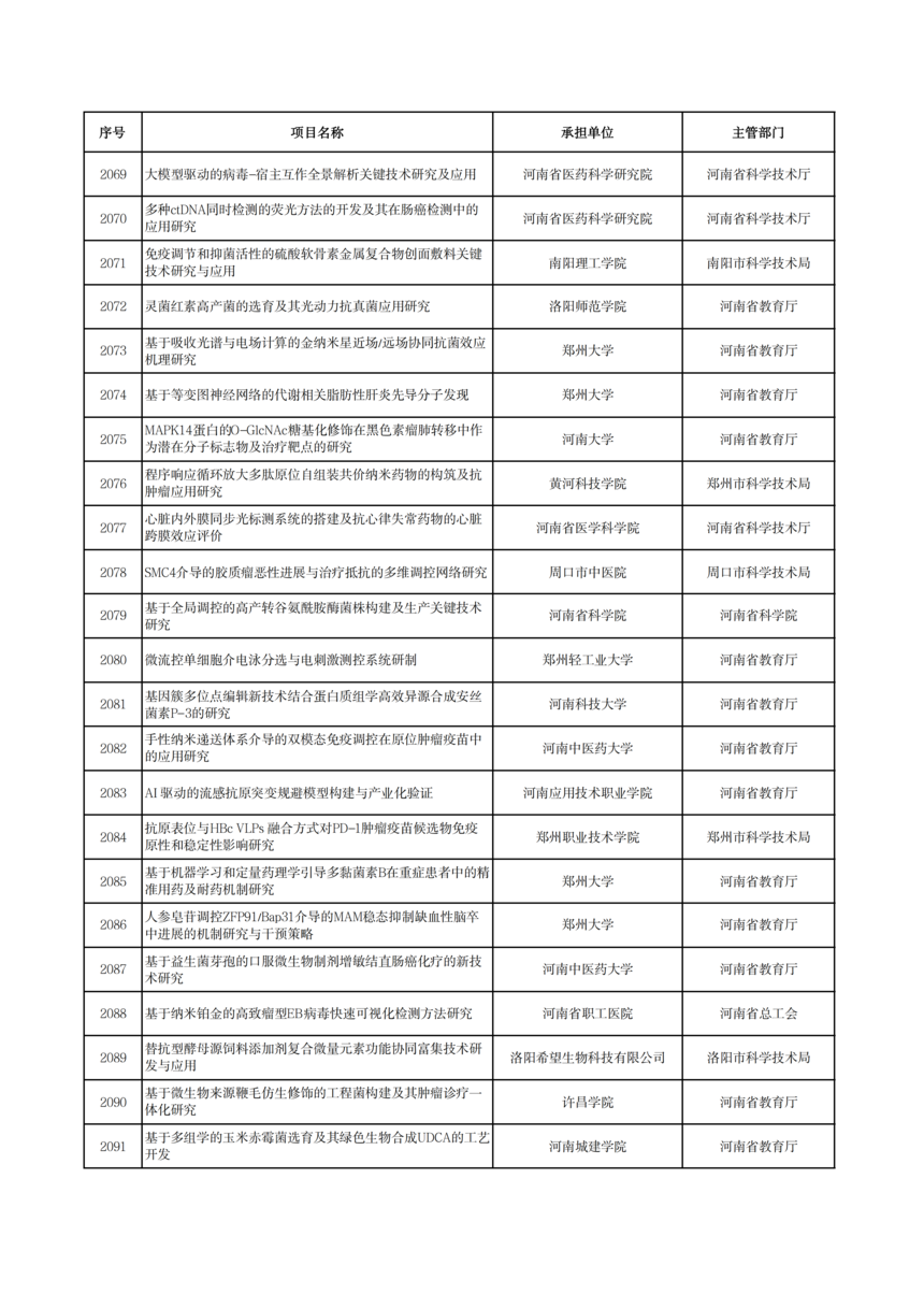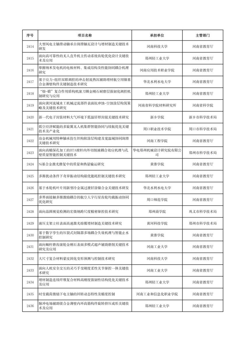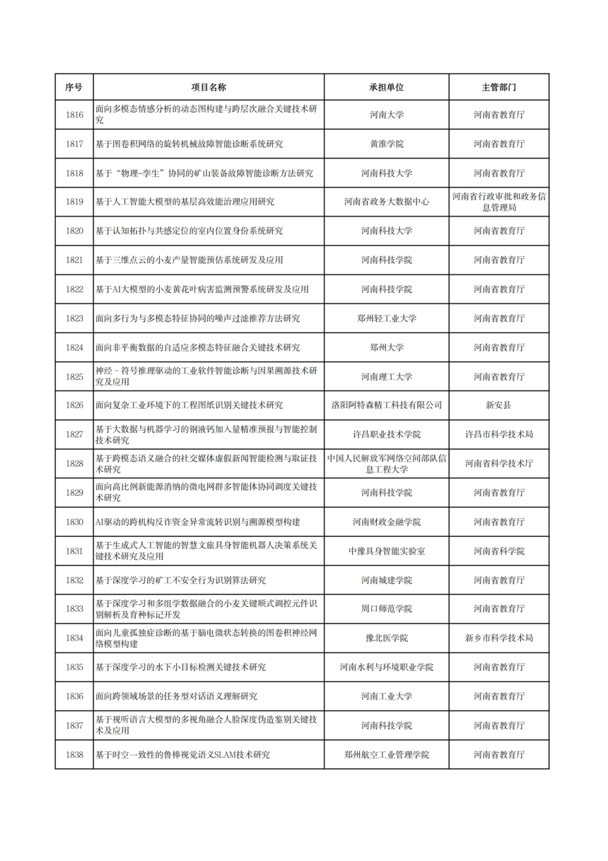 2026年度河南省科技攻關項目擬立項公示2026年度河南省科技攻關項目擬立項公示 根據(jù)《河南省科技計劃項目管理辦法(試行)》和《河南省科技計劃項目信息公開管理辦法》要求,現(xiàn)將2026年度河南省科技攻關擬立項項目予以公示,公示期5個工作日(2026年1月19日—23日)。 公示期間,任何單位或者個人對公示項目有異議的,應當以書面方式向我廳提出。為便于核實查證、客觀公正處理異議,提出異議的單位或者個人應當表明真實身份,并提供有效聯(lián)系電話和必要的佐證材料。個人提出異議的,須在書面異議材料上簽署真實姓名和身份證號碼;以單位名義提出異議的,須提供聯(lián)系人并加蓋本單位公章。匿名異議和超出期限的異議不予受理。 科技項目統(tǒng)籌推進處: 0371—86561692 廳機關紀委: 0371—86561631 附件: 2026年1月19日