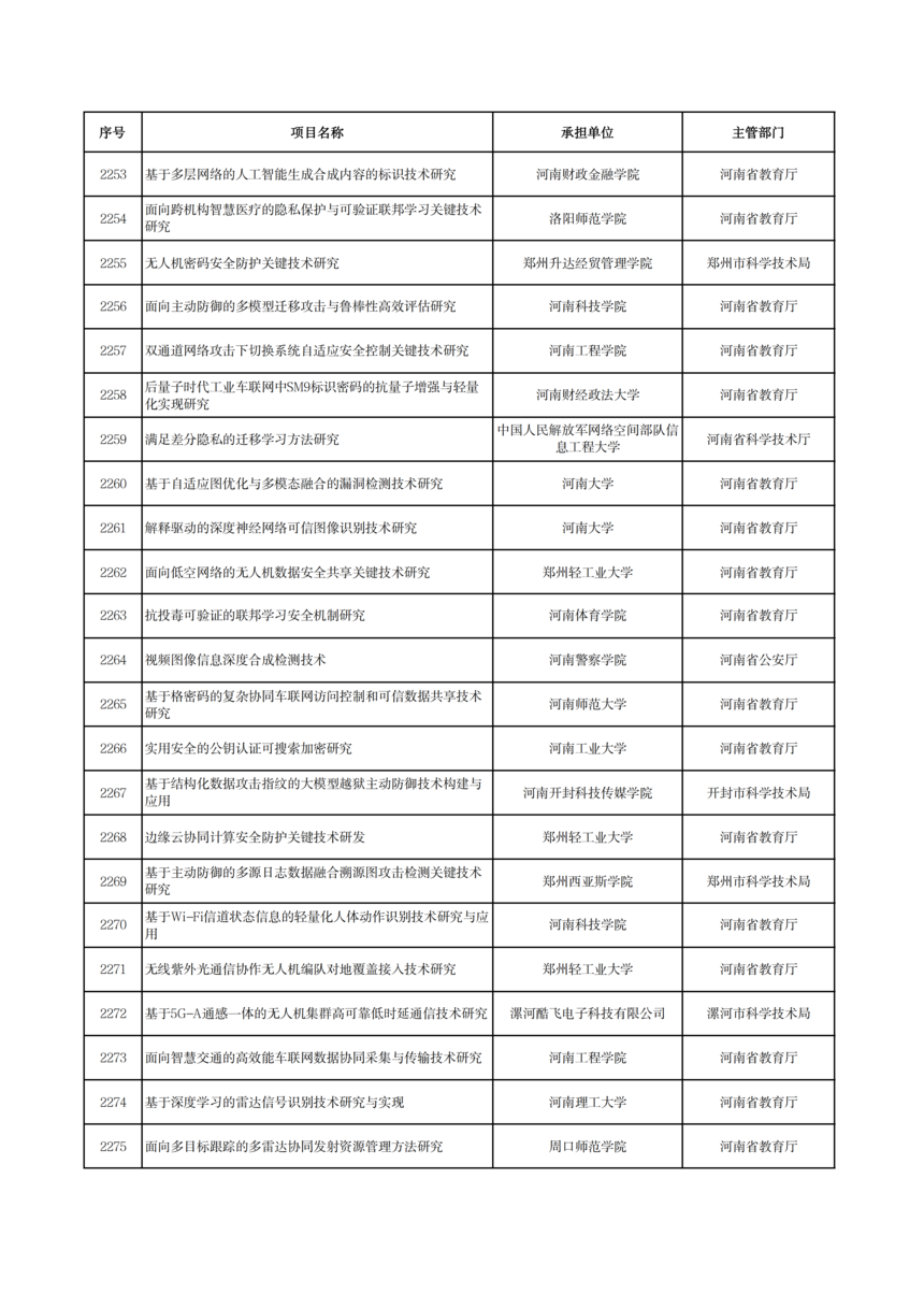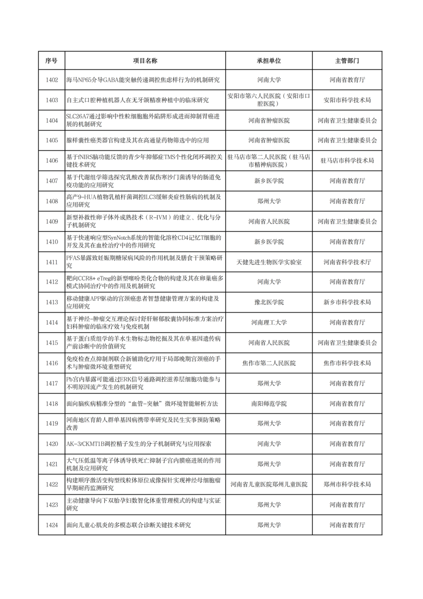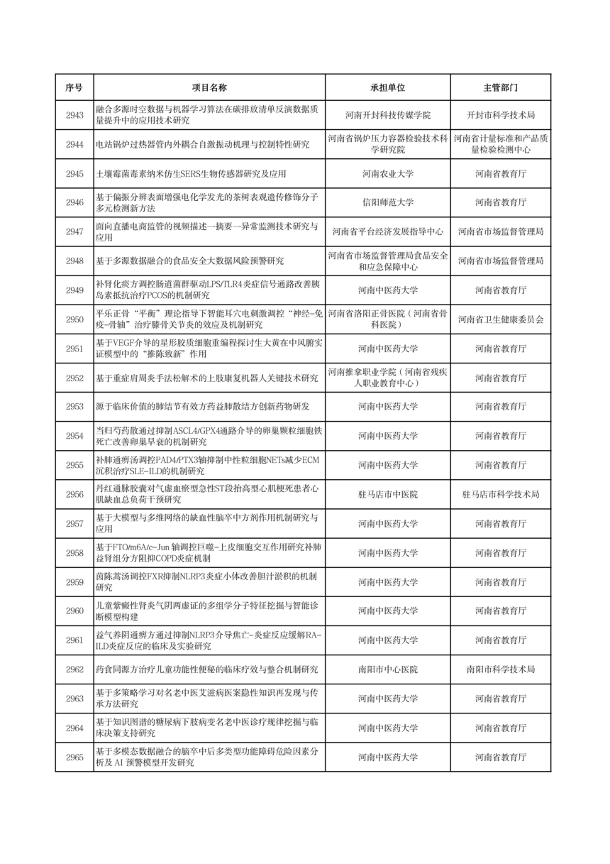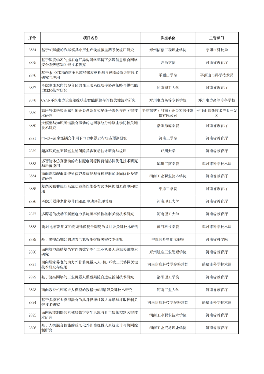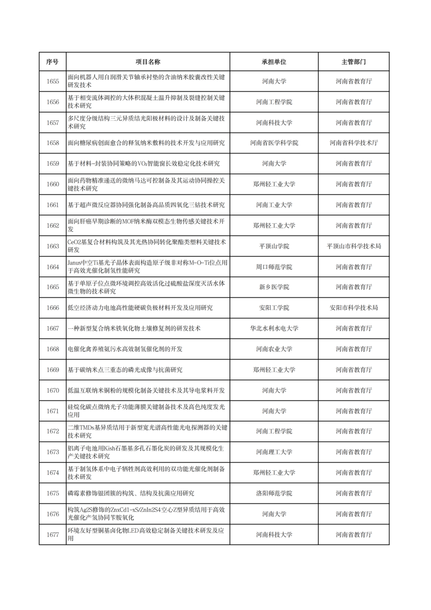 2026年度河南省科技攻關項目擬立項公示2026年度河南省科技攻關項目擬立項公示 根據(jù)《河南省科技計劃項目管理辦法(試行)》和《河南省科技計劃項目信息公開管理辦法》要求,現(xiàn)將2026年度河南省科技攻關擬立項項目予以公示,公示期5個工作日(2026年1月19日—23日)。 公示期間,任何單位或者個人對公示項目有異議的,應當以書面方式向我廳提出。為便于核實查證、客觀公正處理異議,提出異議的單位或者個人應當表明真實身份,并提供有效聯(lián)系電話和必要的佐證材料。個人提出異議的,須在書面異議材料上簽署真實姓名和身份證號碼;以單位名義提出異議的,須提供聯(lián)系人并加蓋本單位公章。匿名異議和超出期限的異議不予受理。 科技項目統(tǒng)籌推進處: 0371—86561692 廳機關紀委: 0371—86561631 附件: 2026年1月19日